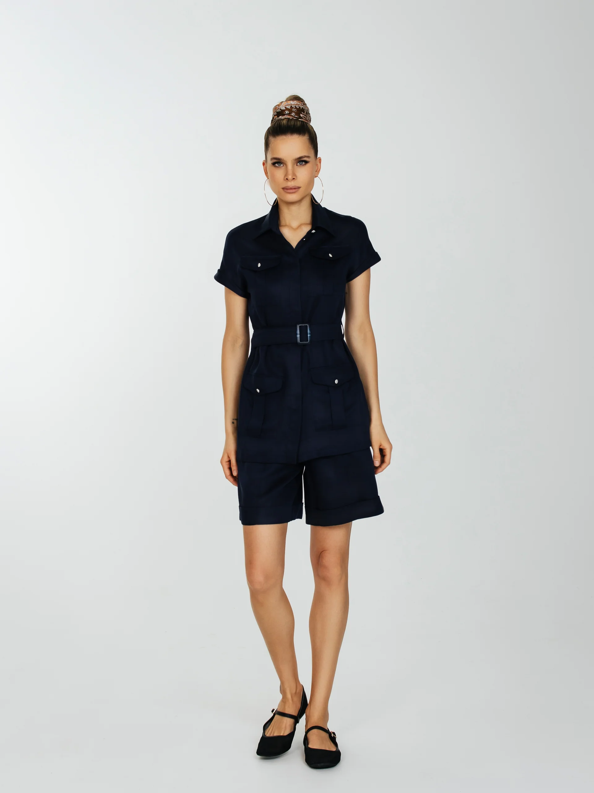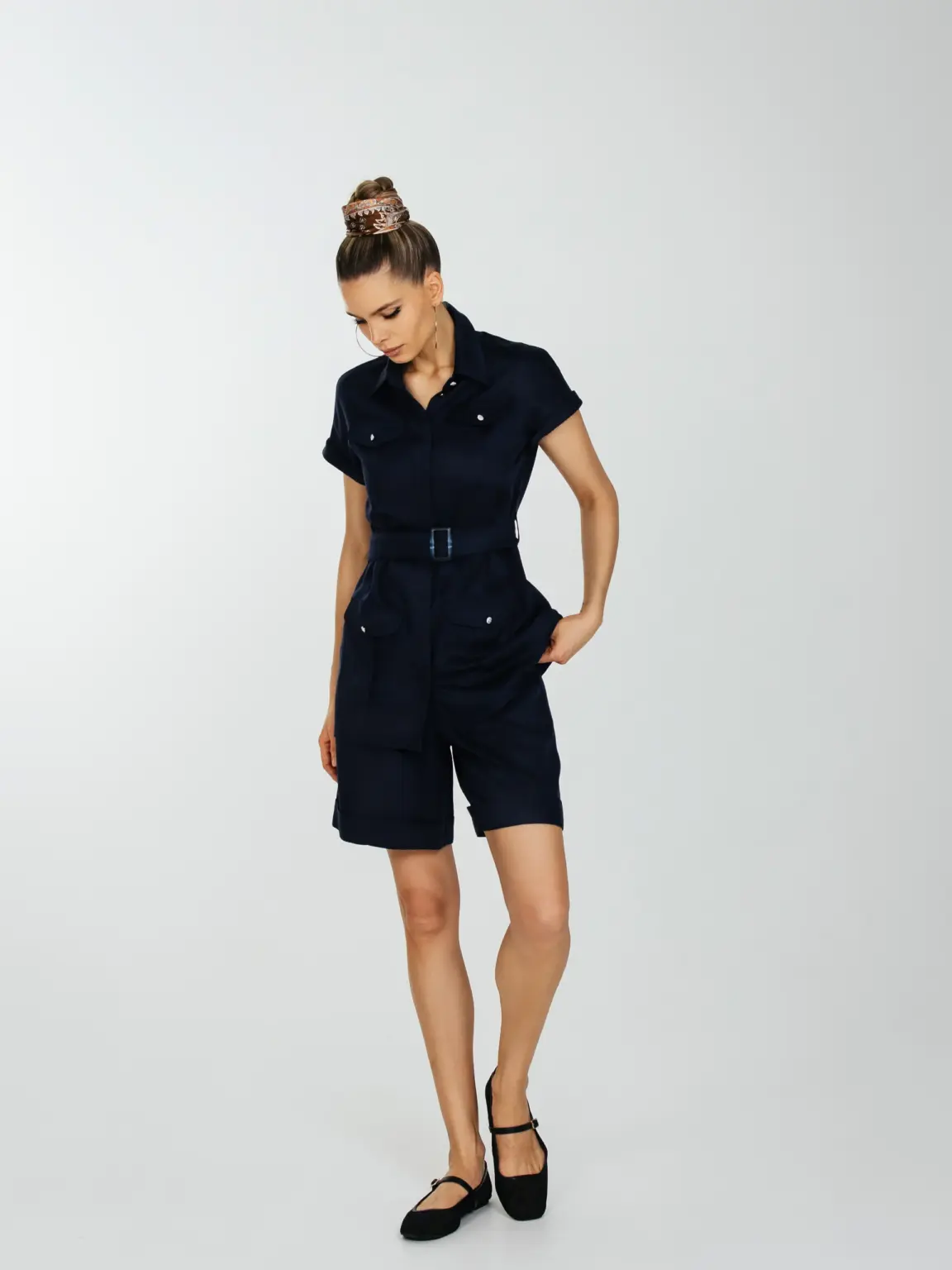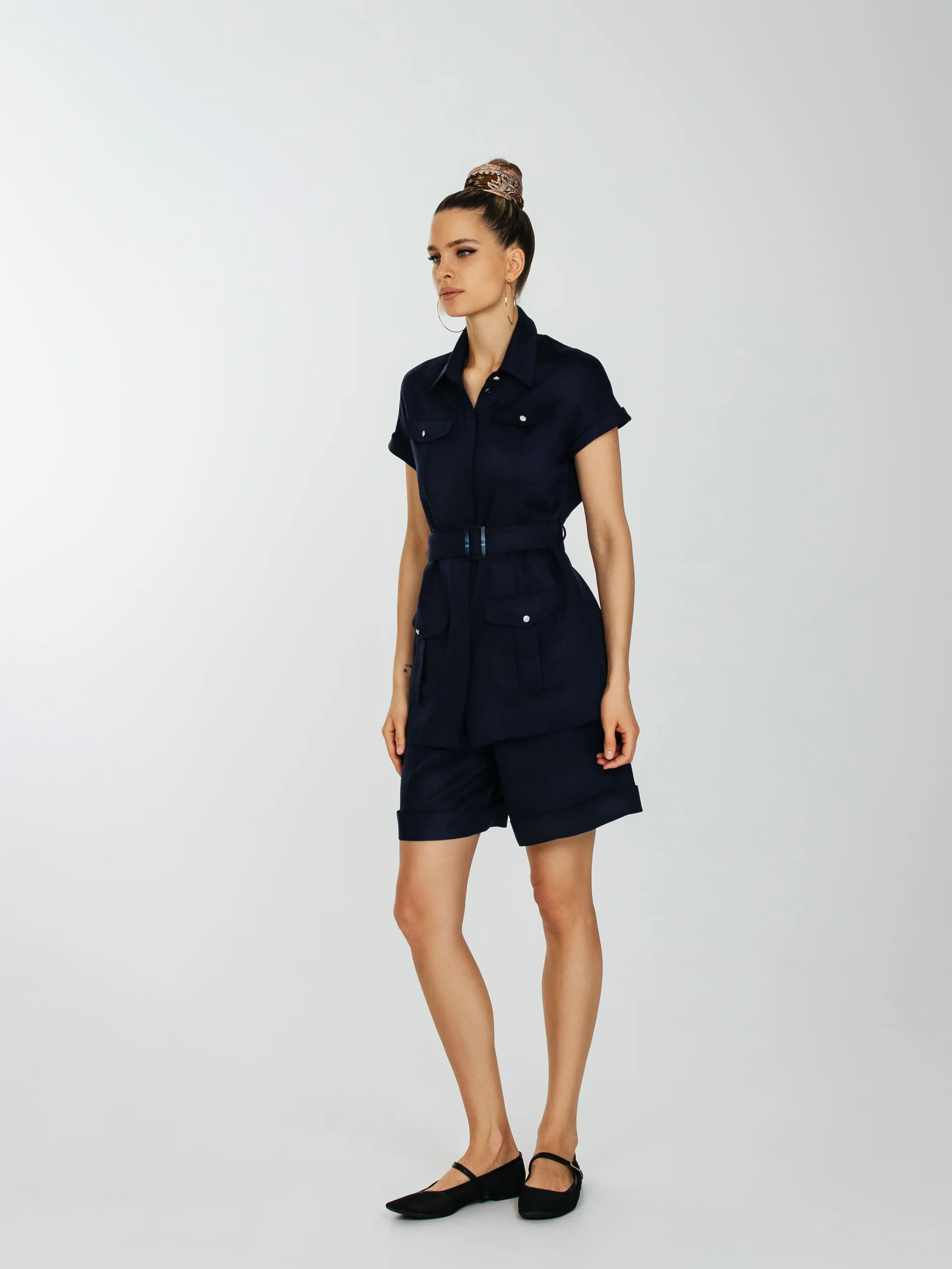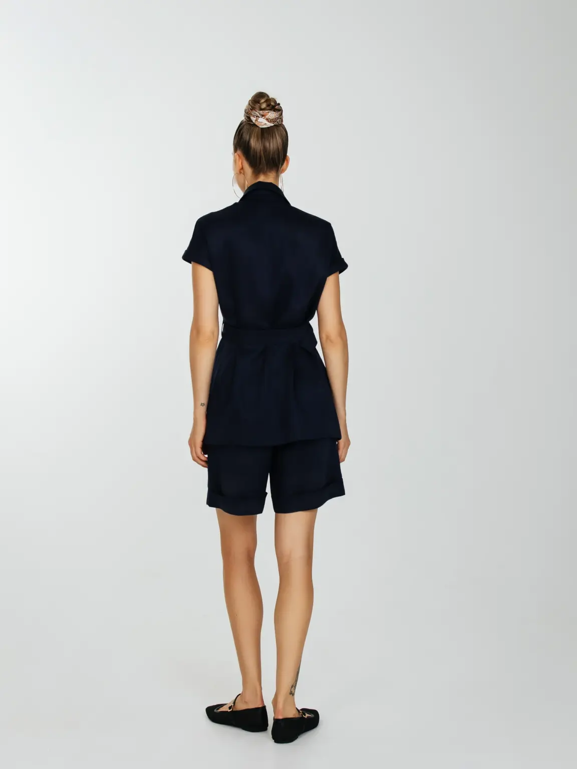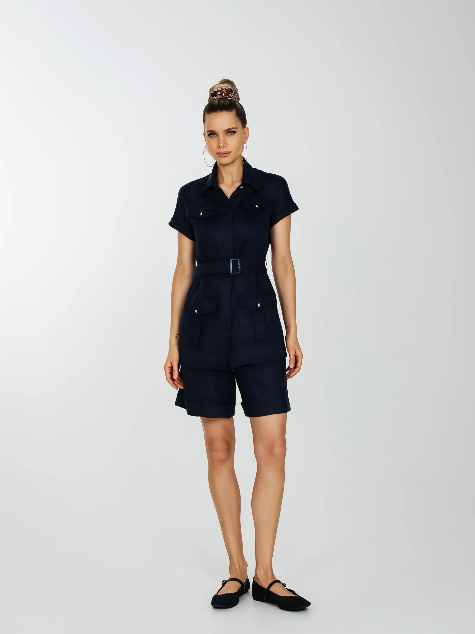 Шорты с высокой талией с защипами и карманами.