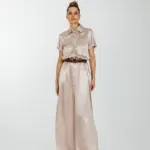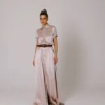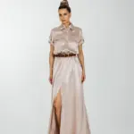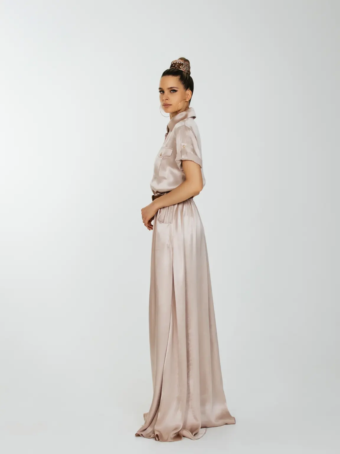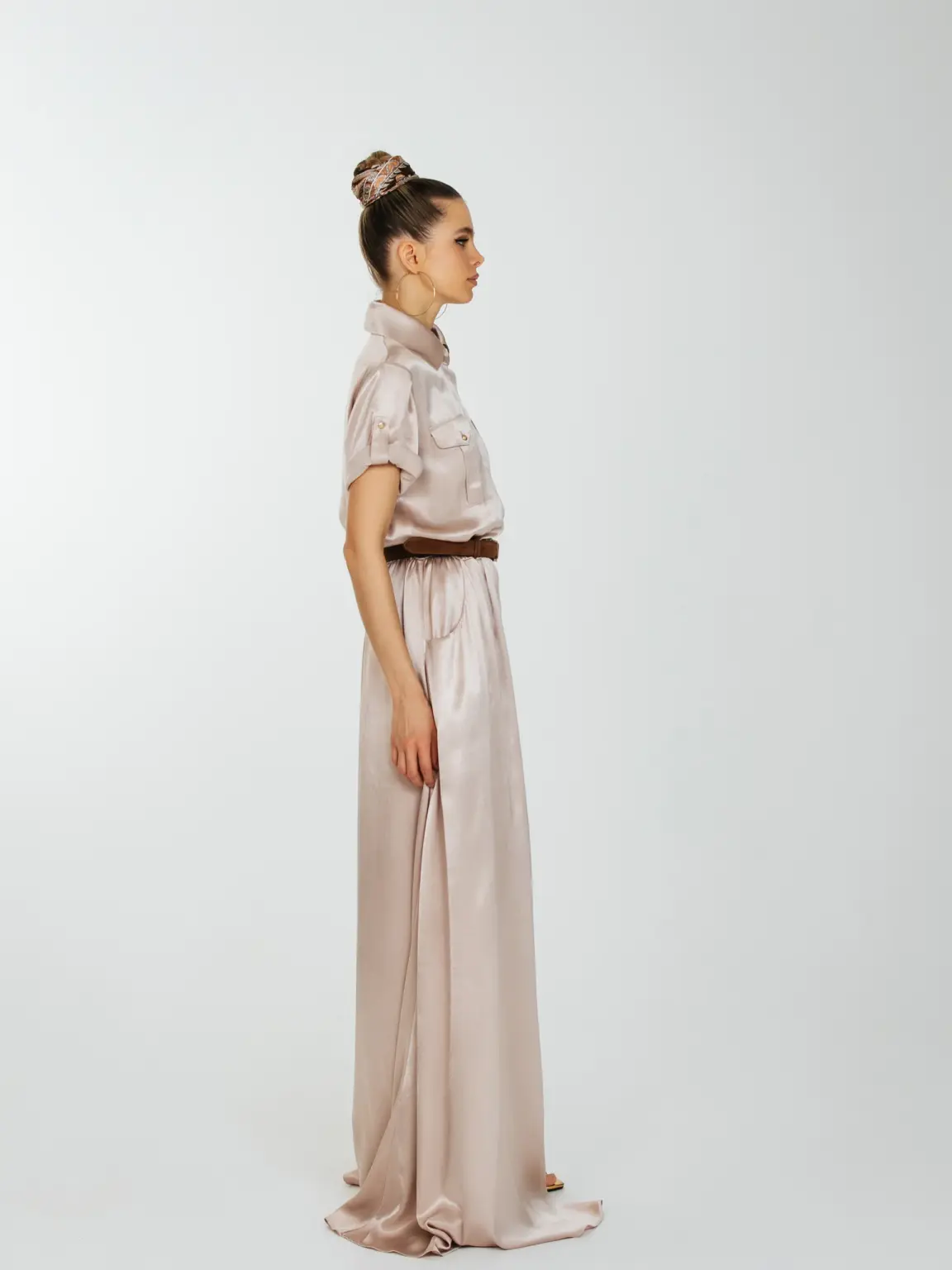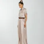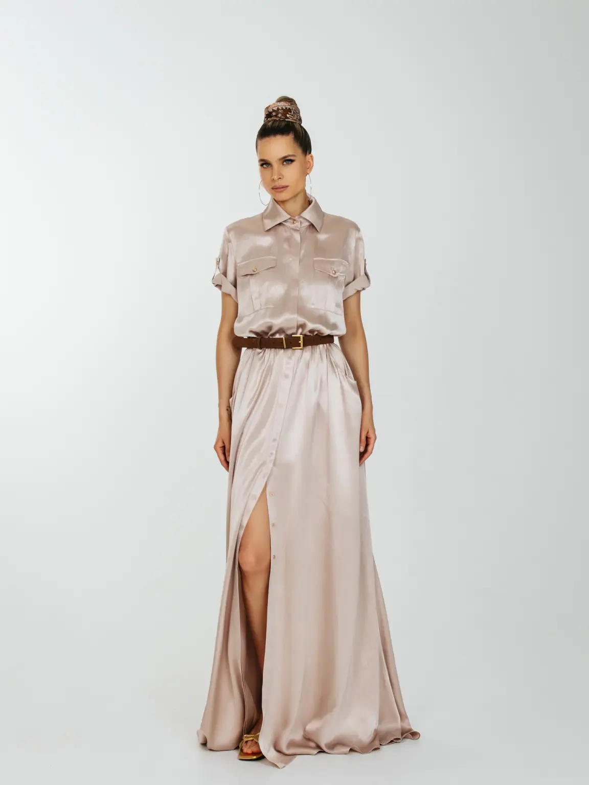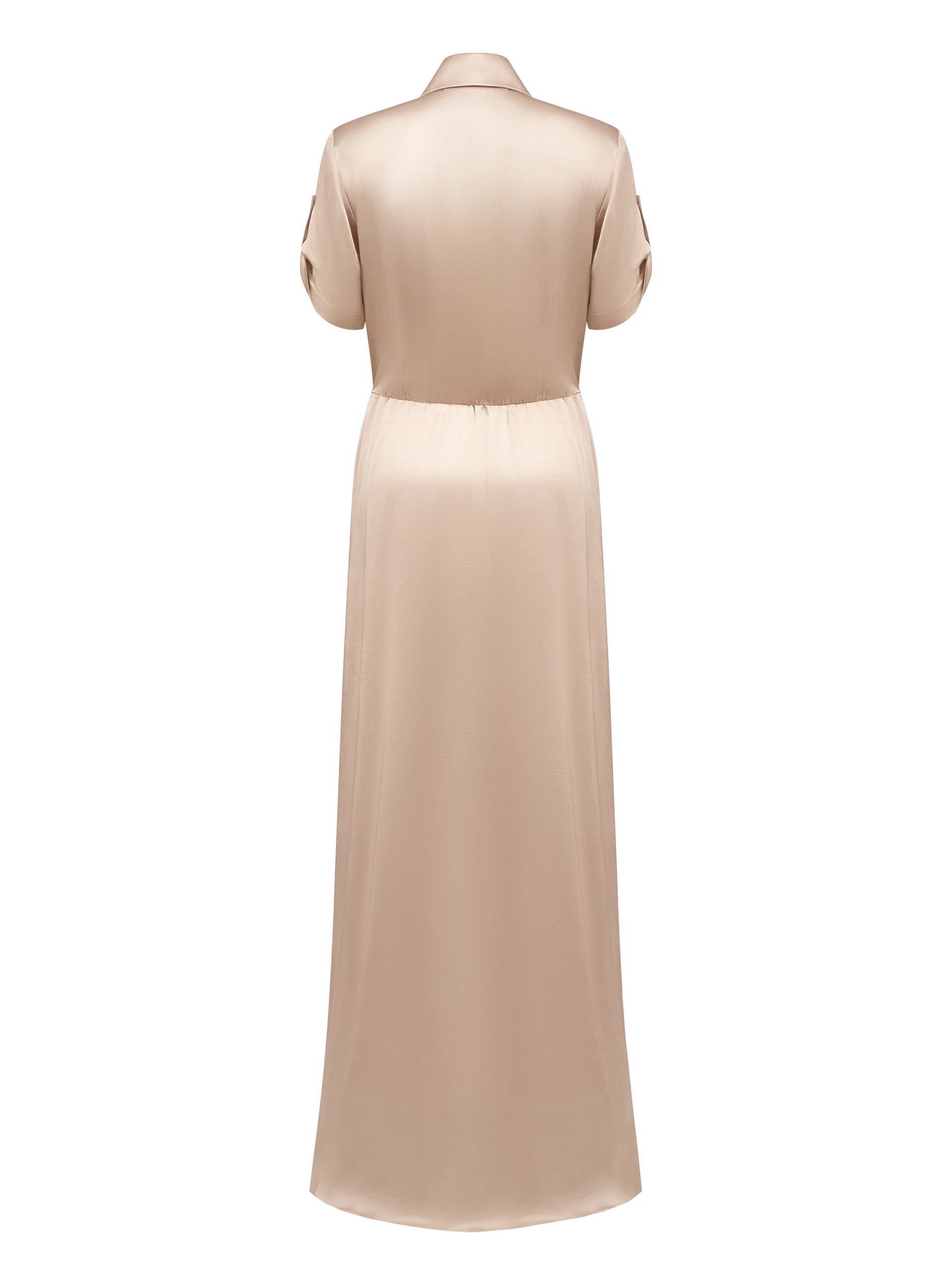 Струящее платье длиною в пол с накладными нагрудными карманами и с карманами по боковому шву.