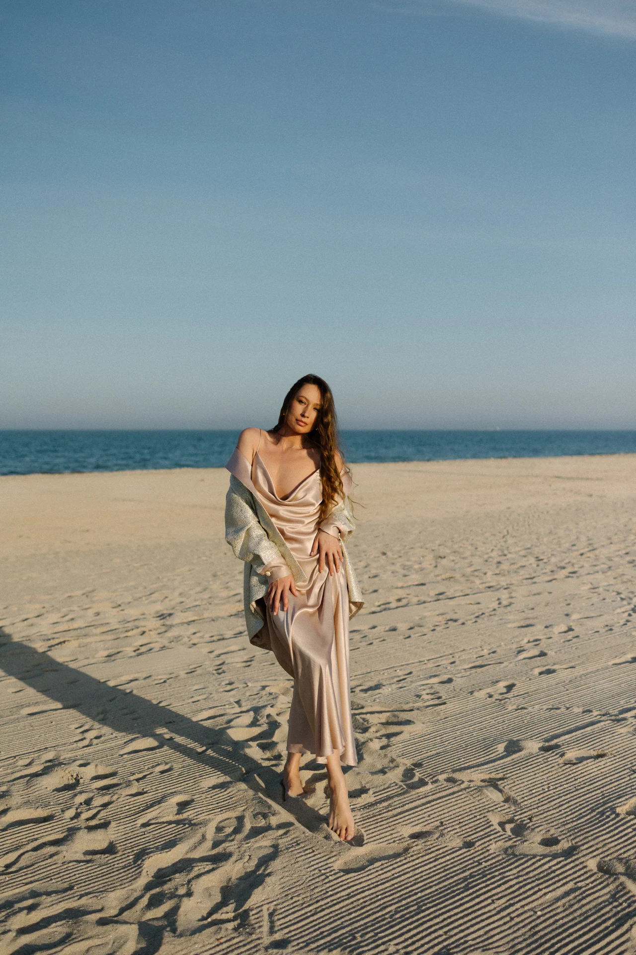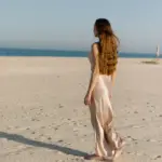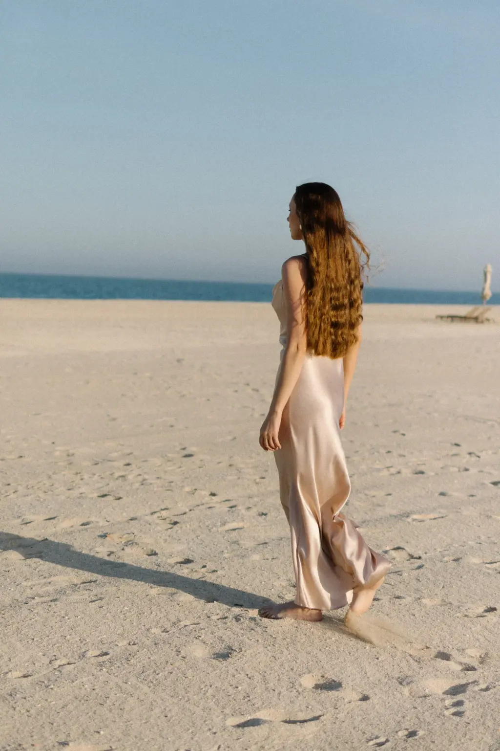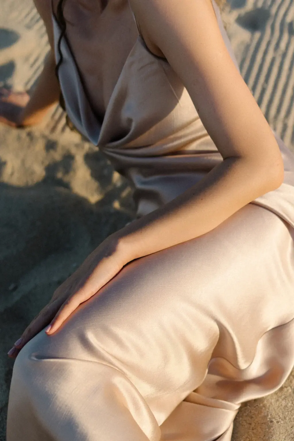 Платье приталенного силуэта с расклешением к низу и с удлинением сзади.